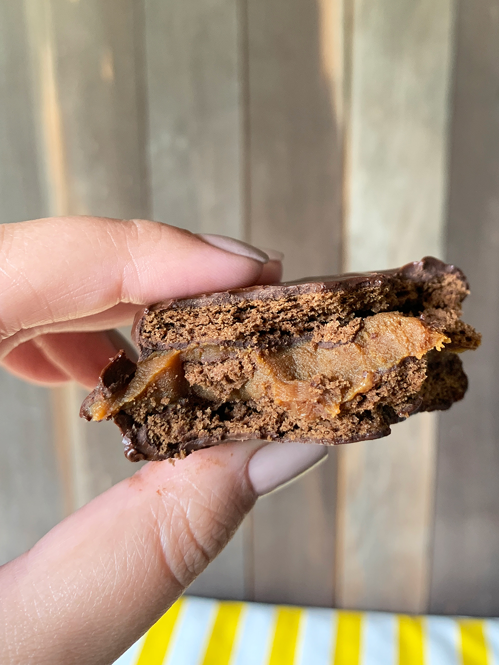 Mesmo com o nome e slogan “suspeitos”, eu achei o alfajor muuuito bom, com bastante doce de leite. Adorei!