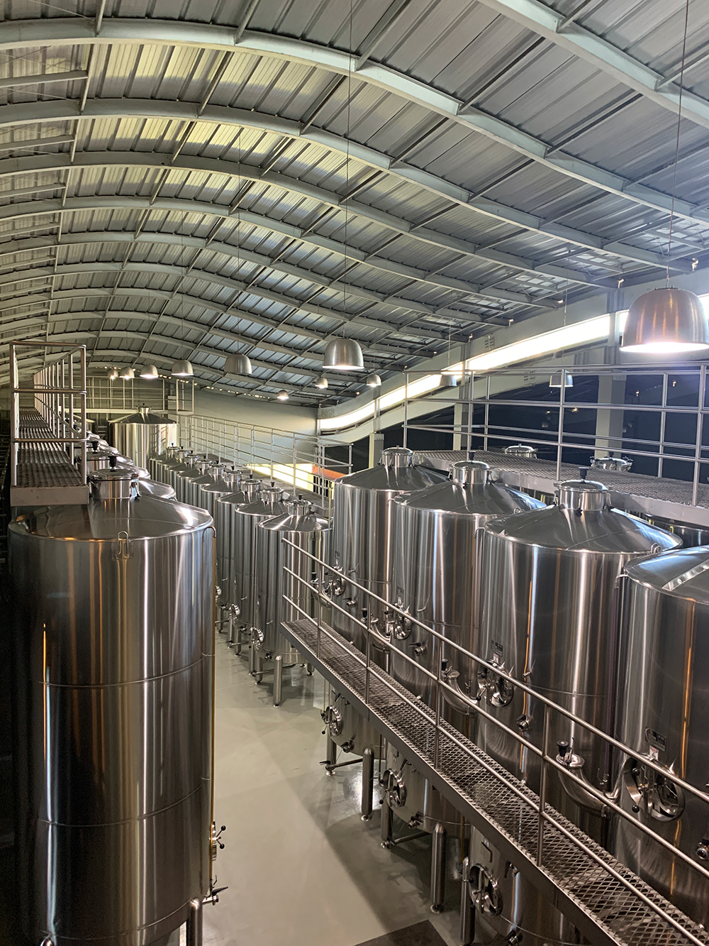 Tanto no ambiente de produção quanto na cave dá pra ver a enorme rocha a de basalto que foi conservada no terreno e que ajuda a manter, naturalmente, a temperatura mais amena. Incrível!
