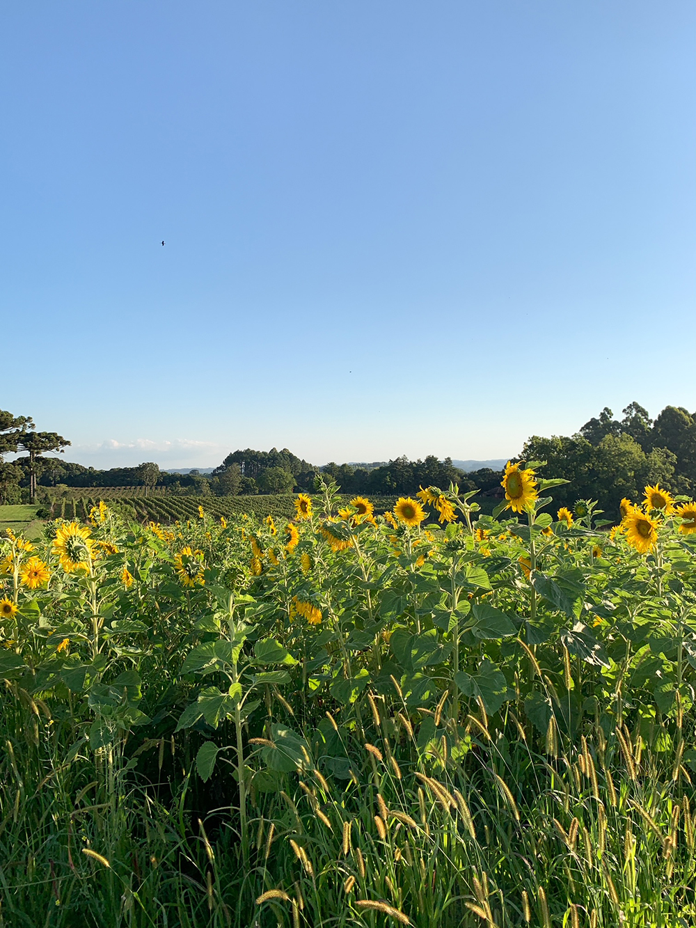 Eu não vi nenhum girassol durante a minha viagem para a Itália, mas tive a sorte de passar um final de semana na Serra Gaúcha em janeiro desse ano, bem na época que os girassóis estão abertos, floridos.
