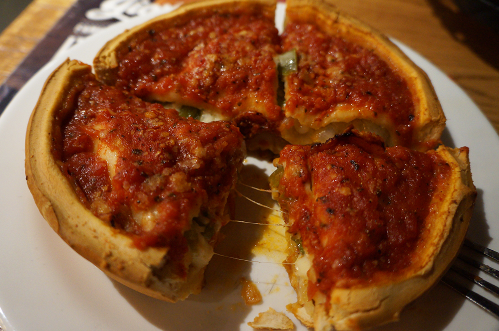 Esse tipo de pizza parece uma torta e é deliciosa! A mais famosa de todas é a do Giordano’s em busca da famosa