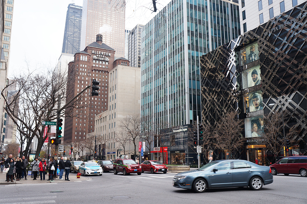 Na North Michigan Ave tem mais lojas de luxo, Sephora, Forever 21, Zara, Uniqlo, Top Shop, Apple, Adidas, The North Face, H&M, Nike, Best Buy, algumas galerias/shopping, entre outras.