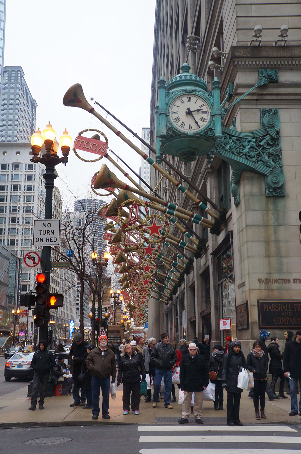 Infelizmente eu não conheci Chicago com sol, num dos dias tava a maior neblina e no outro nevou o tempo inteiro, mas já vi fotos em que o Chicago River estava com uma cor maravilhosa, uma coisa meio verde esmeralda.