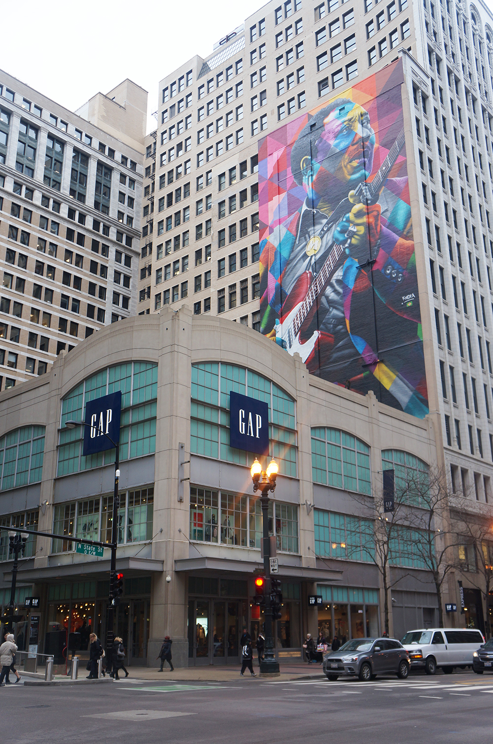 Nessa mesma rua tem The Chicago Theatre, que a fachada fica mais linda a noite e um mural do Kobra em homenagem ao centenário do Muddy Water, o “pai” do Chicago Blues.