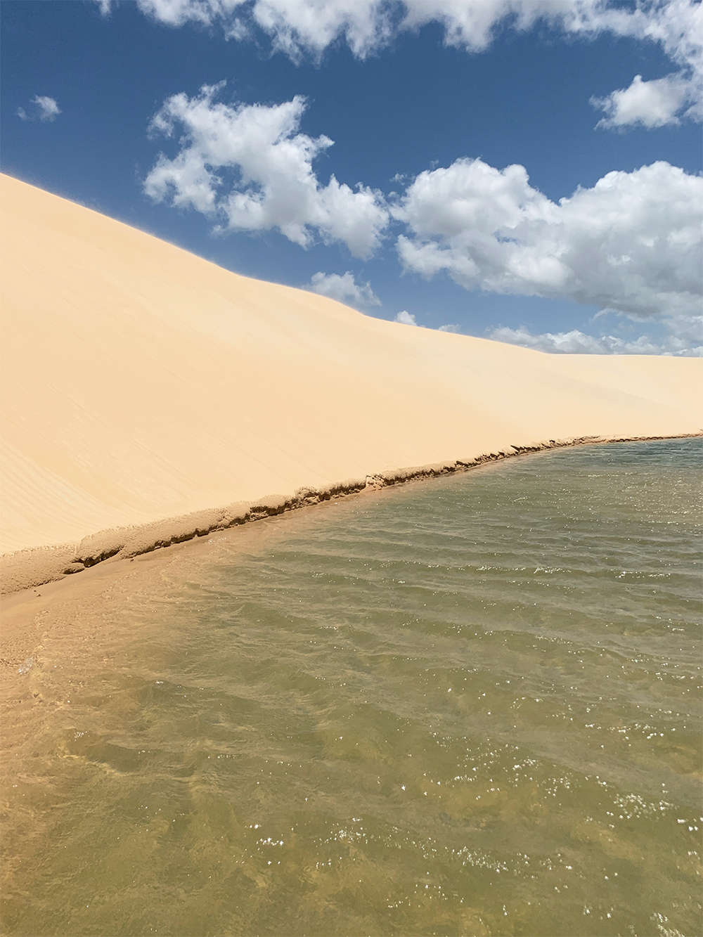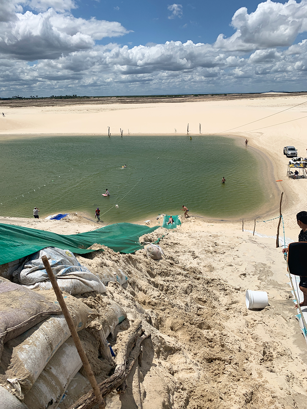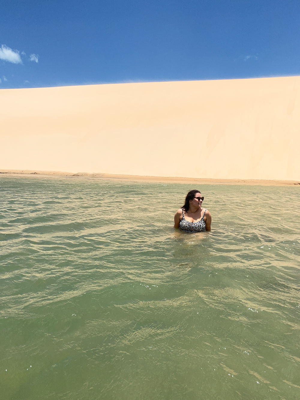 Nessa época do ano a lagoa não estava funda e eu consegui atravessá-la caminhando, até chegar nas dunas