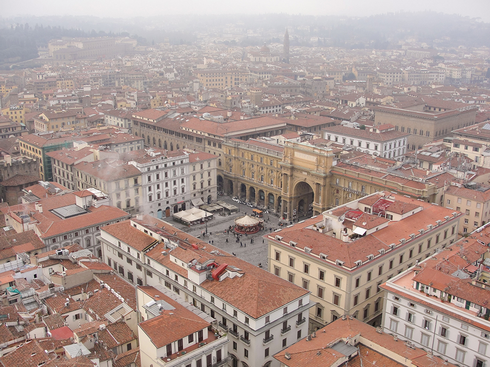 A Praça Michelangelo (Piazzale Michelangelo) foi construída na parte alta de Florença, em uma colina, na época que ela era a capital da Itália (1869) e passou por uma renovação urbana.