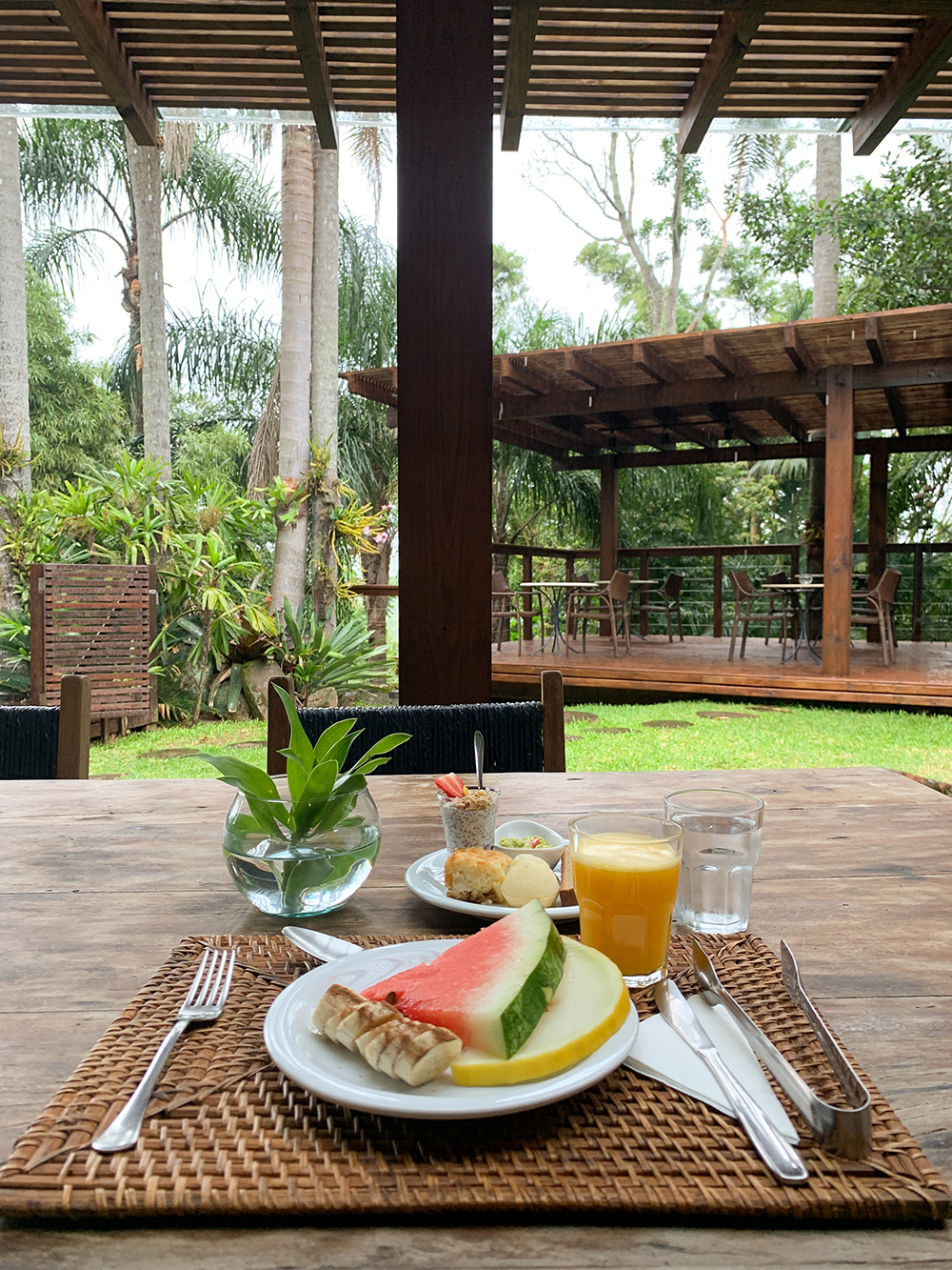 Nós optamos por tomar o café da manhã na área externa, no jardim. Que delícia!
