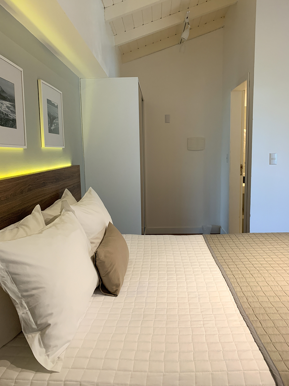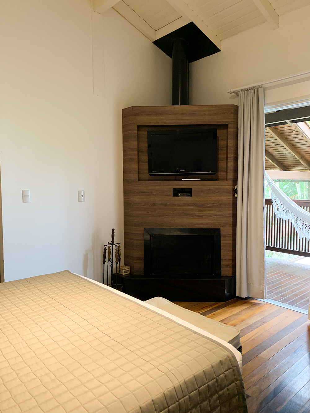 Achei a acomodação super aconchegante e bem equipada, com sacada com rede, mesa e cadeiras na sacada e na parte interna, lareira, ar condicionado, frigobar, secador. Um espaço ótimo, com uma cama super confortável e um chuveiro com bastante pressão (parece bobagem, mas isso conta muito)!