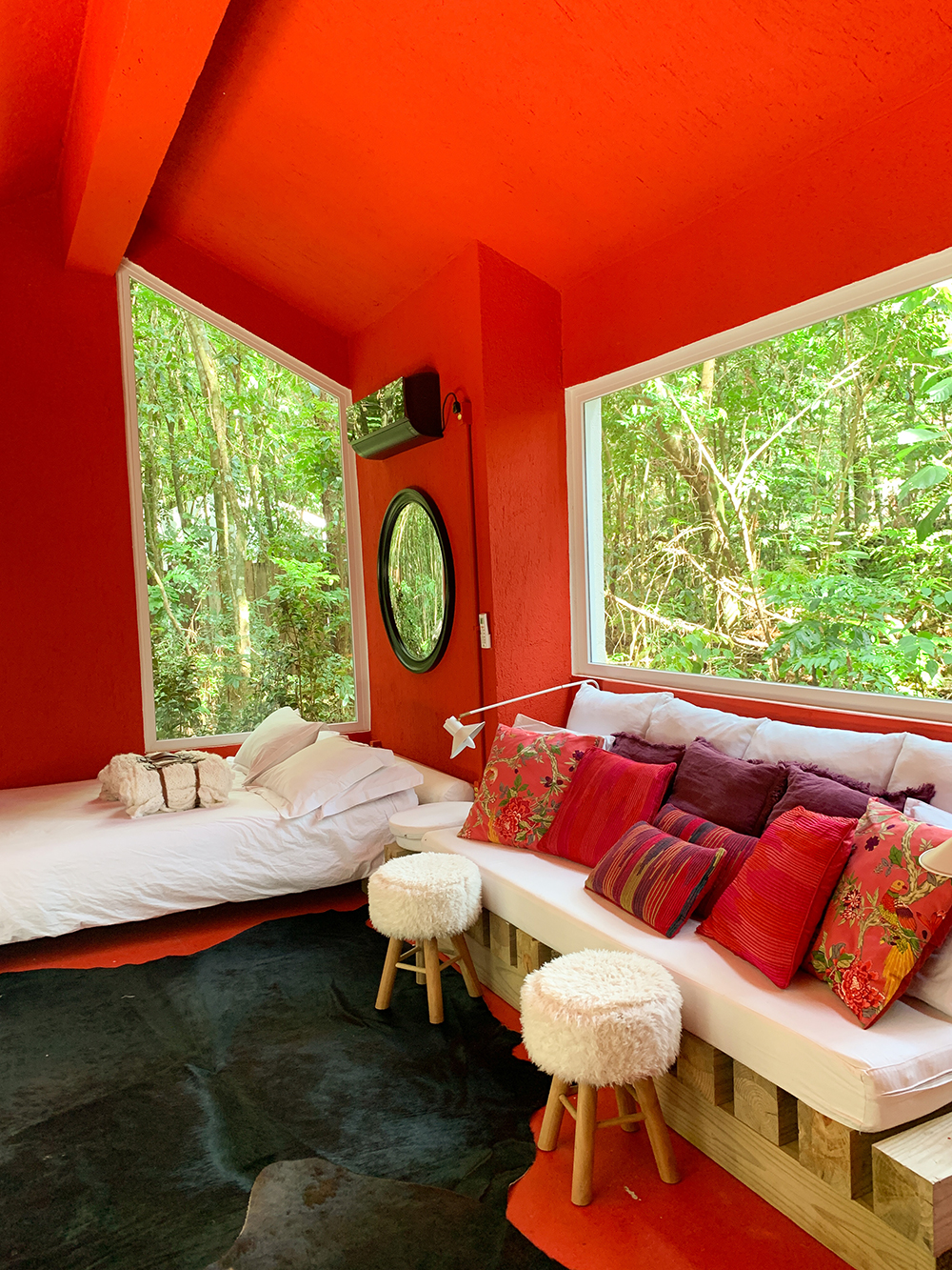 A casa vermelha é super alegre e divertida! Eu me senti em uma exposição da artista japonesa Yayoi Kusama.