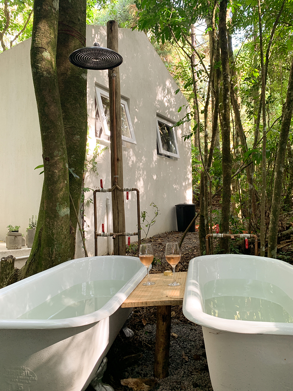 - As casas não tem cortina, exceto no banheiro da casa branca. As casas são cercadas de árvores, com muito conforto e privacidade;