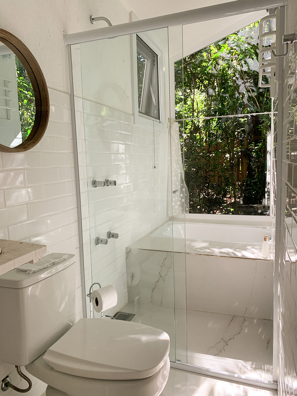 Como comentei, todas as casas são bastante parecidas. O que muda são as cores, a decoração e um detalhe “extra”, que no caso da Olinda 4 é a banheira que fica dentro do banheiro, com vista para a natureza. Maravilhosa!