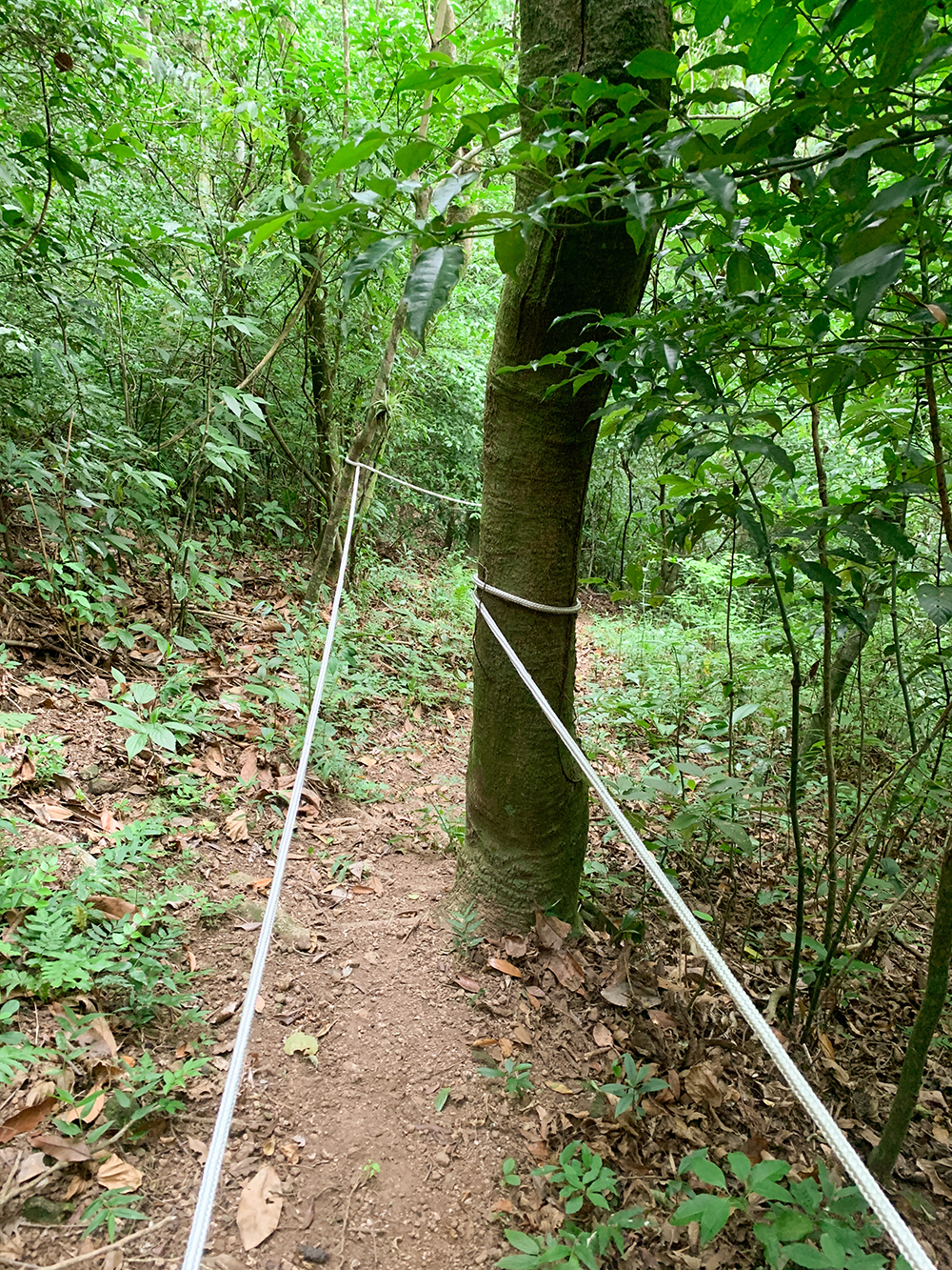 Na foto acima, da direita: essa é a parte mais íngreme da trilha. Nesse trecho tem cordas para ajudar na descida e não escorregar.