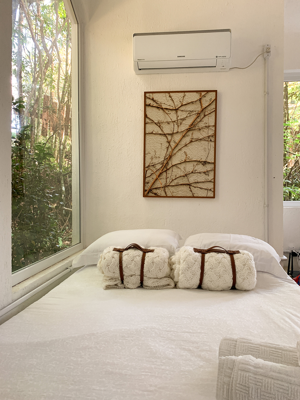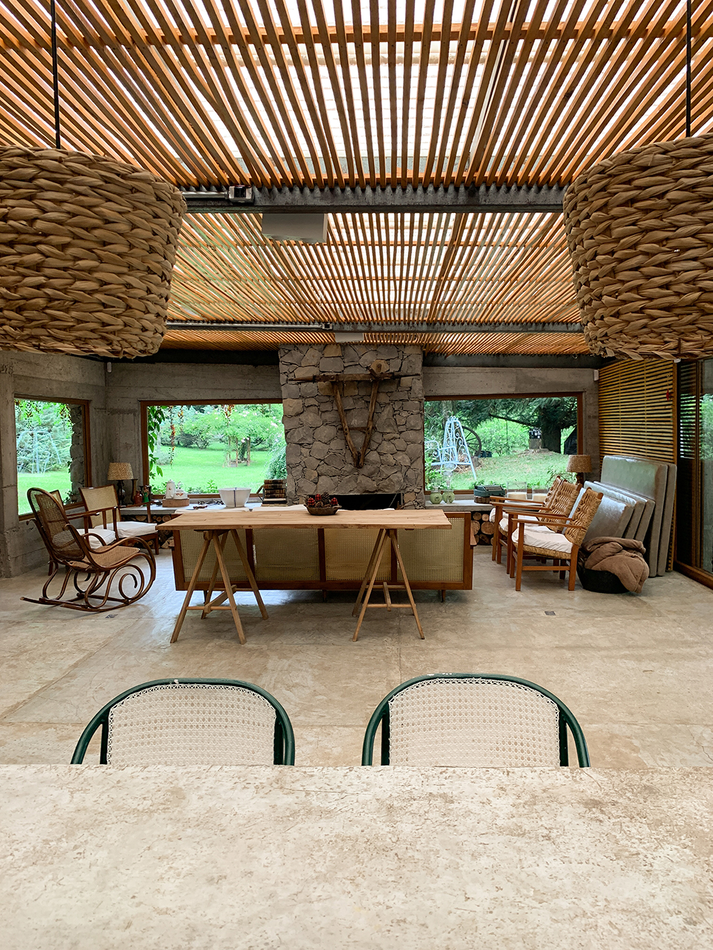 Para onde você olhar tem “um verde”, ainda mais que a casa tem janelões que emolduram as árvores. O contato com a natureza é constante, sem perder o conforto. Tem coisa melhor?