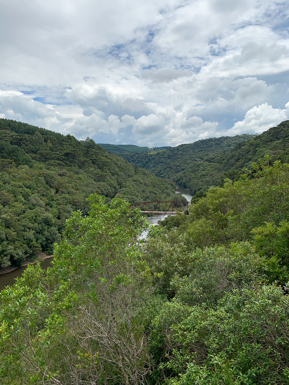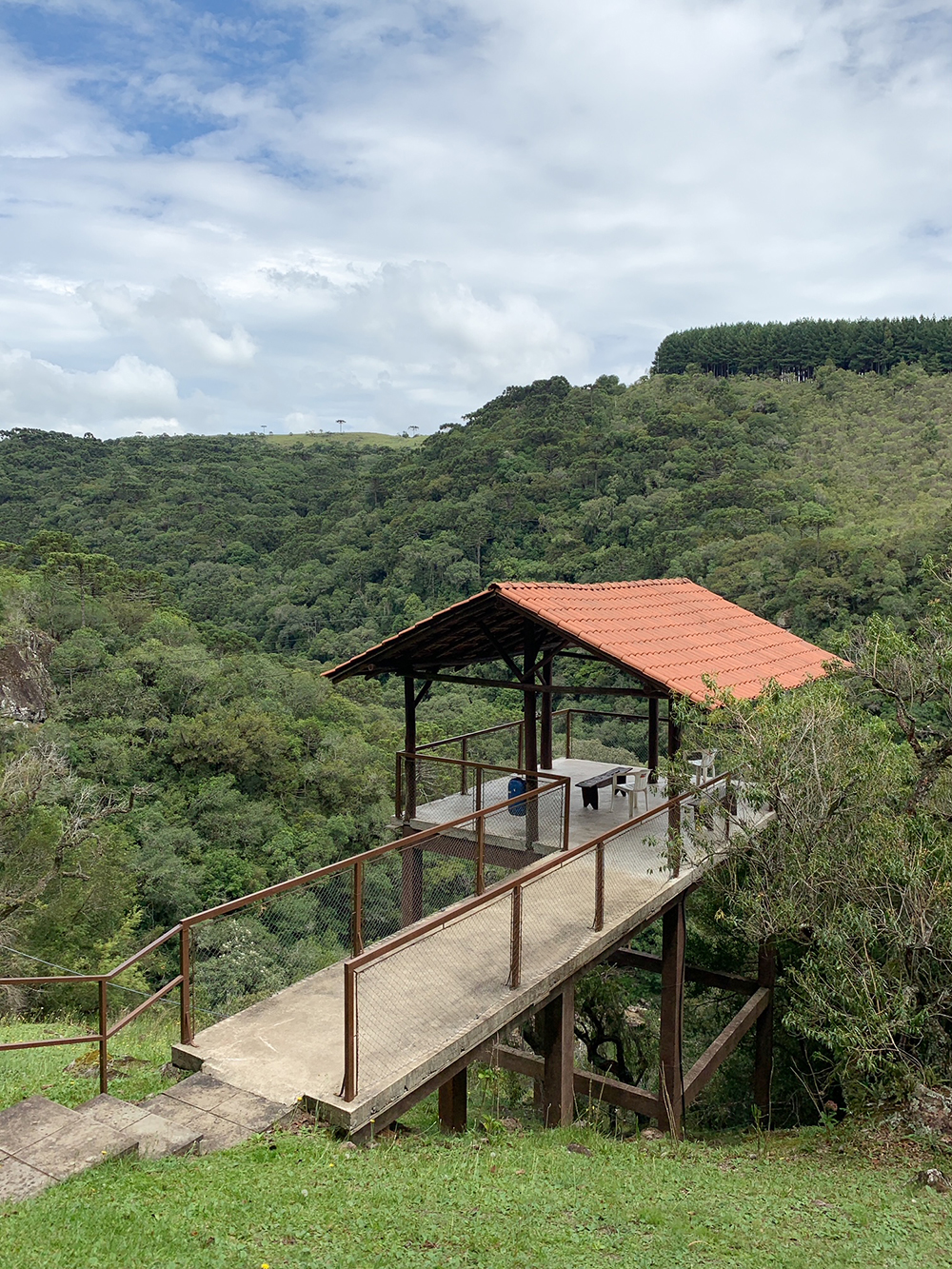 Depois de conhecermos a cachoeira nós voltamos pro carro e subimos até o mirante, que tem vista para a cachoeira e a Ponte de Ferro.