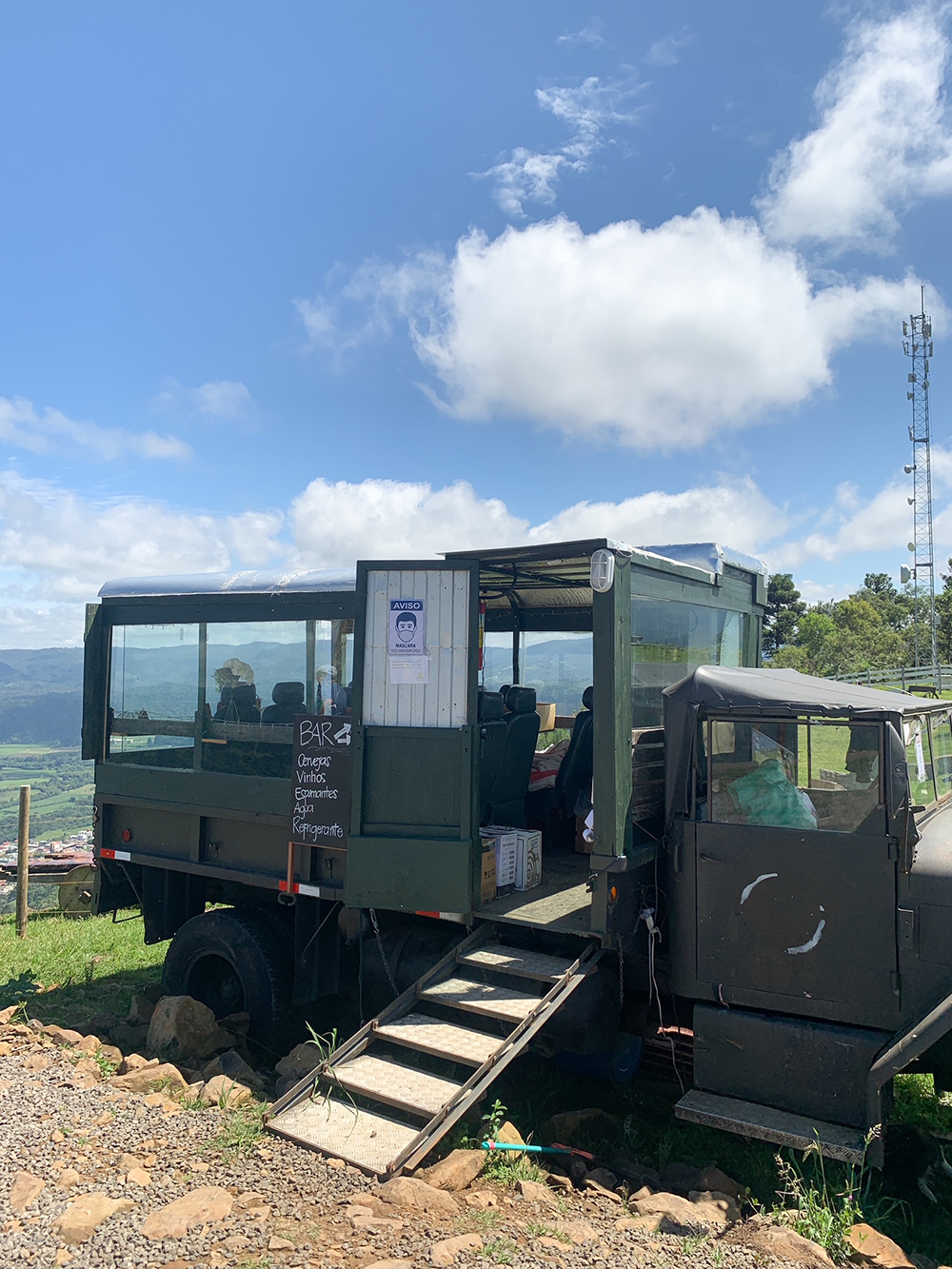 Enquanto isso, o Morro do Parapente tem esse bar super legal que funciona no interior de um caminhão. Eu achei um charme, adorei!